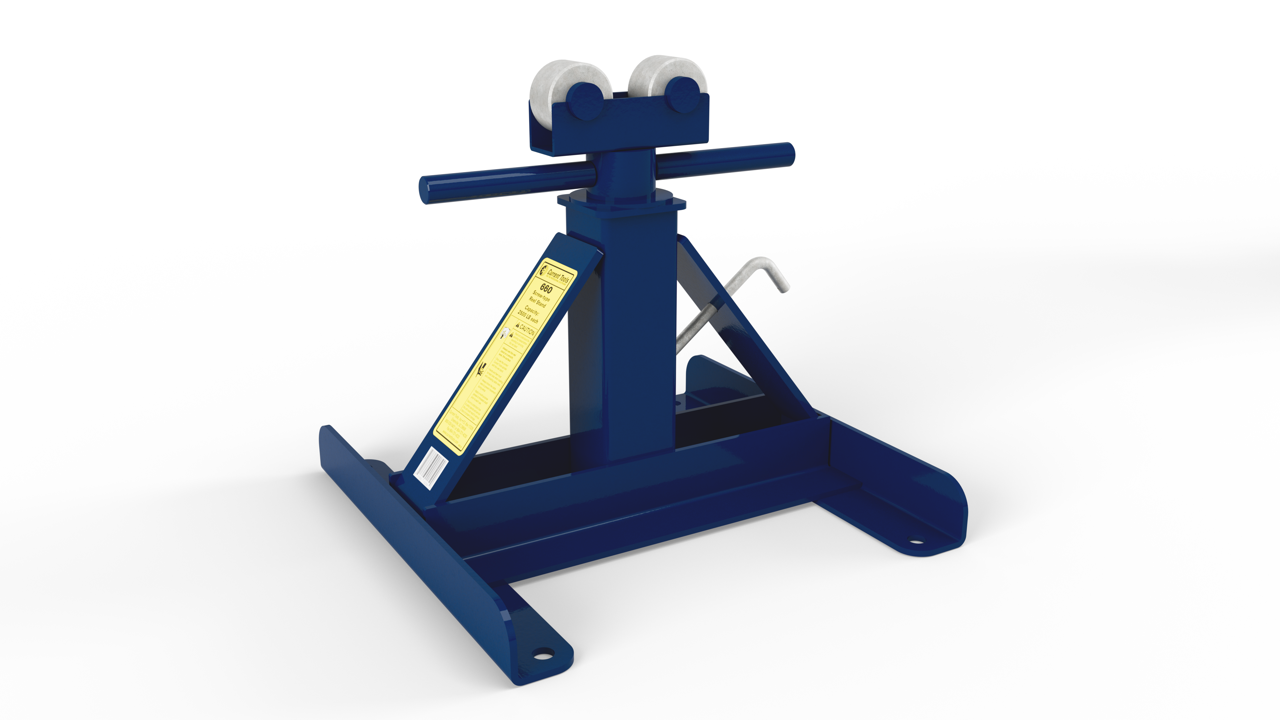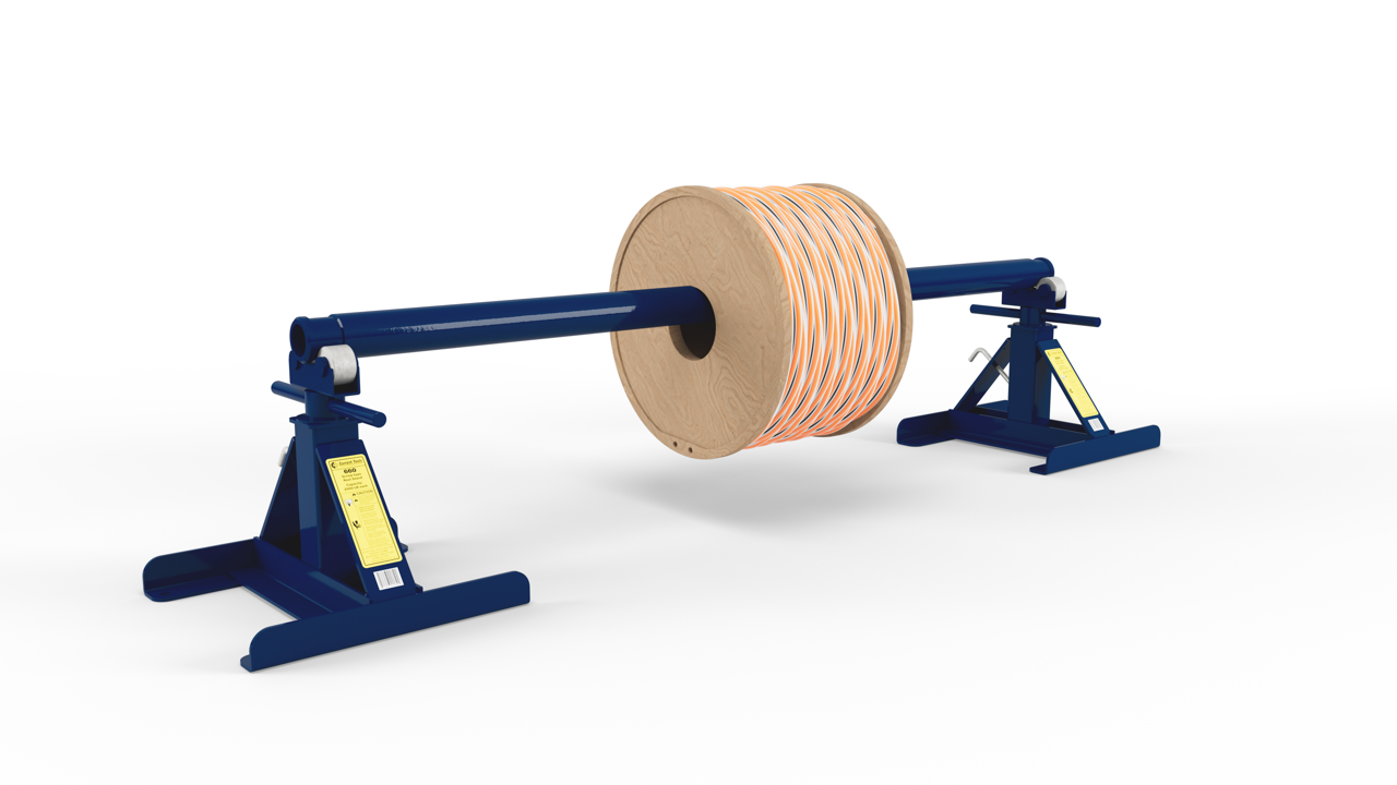 The 660 Reel Stand can support reels weighing up to 2,500 lbs., 5,000 lbs. per set of 2, and with diameters ranging from 28” to 56”, making it ideal for small to mid-sized wire and cable reels.